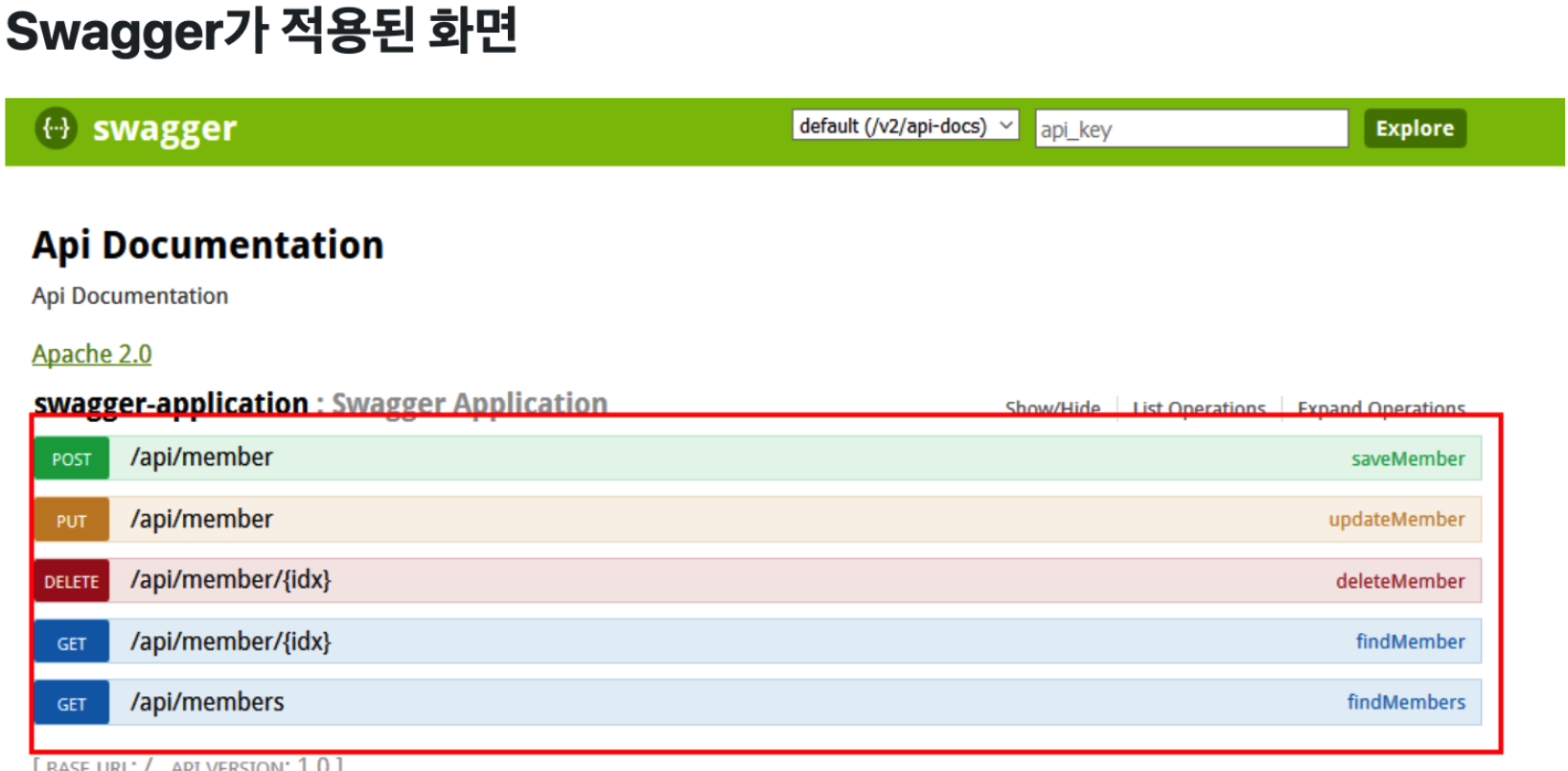 - json 페이지를 참조로해서 swagger가 렌더링하도록 해야한다.