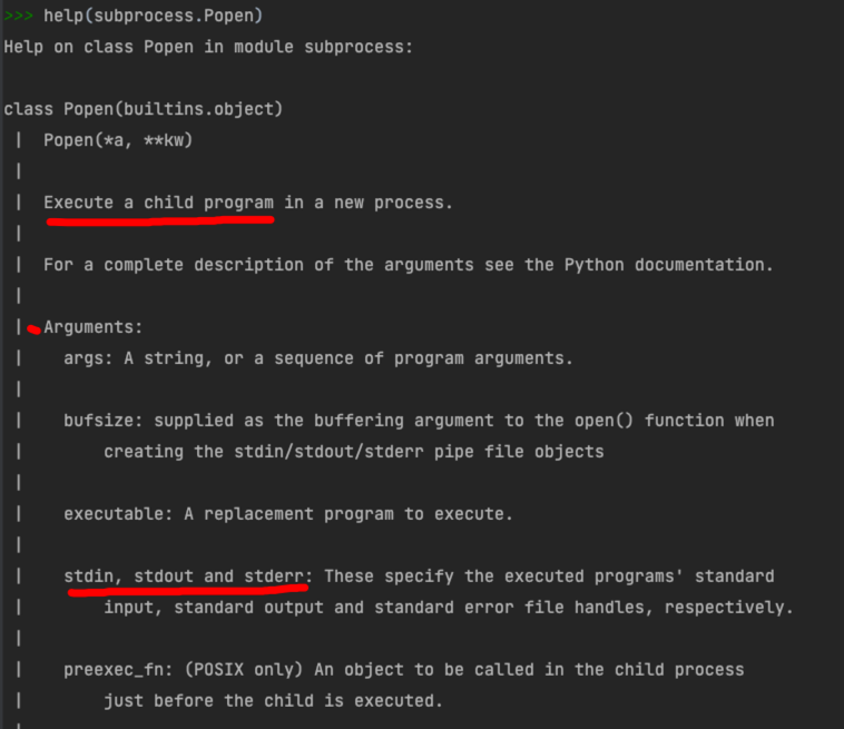 >> help(subprocess.Popen)