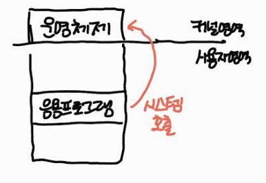 - 사용자 모드로 실행되는 프로그램이 운영체제에게 자원을 요청하기 위해 커널 모드로 전환하는 요청을 시스템 요청(시스템 콜, system call) 이라 한다.