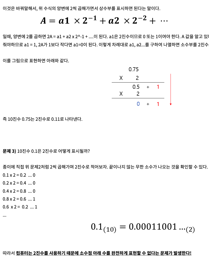 0.75 = 1/2 + 1/4 = 0.11(이진수)