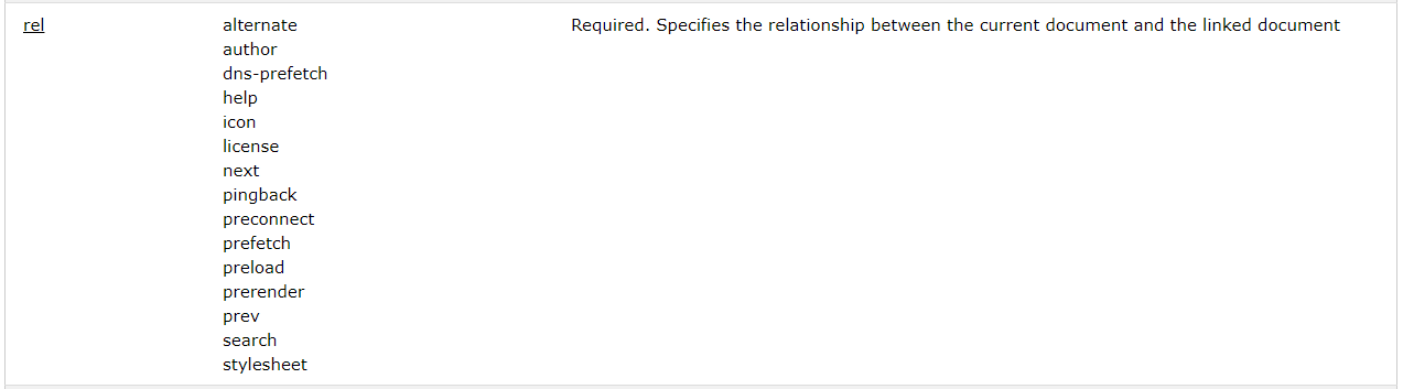 w3school 에서는 'rel' attribute(속성)과 value의 쓰임새를 아래와 같이 표현한다.
