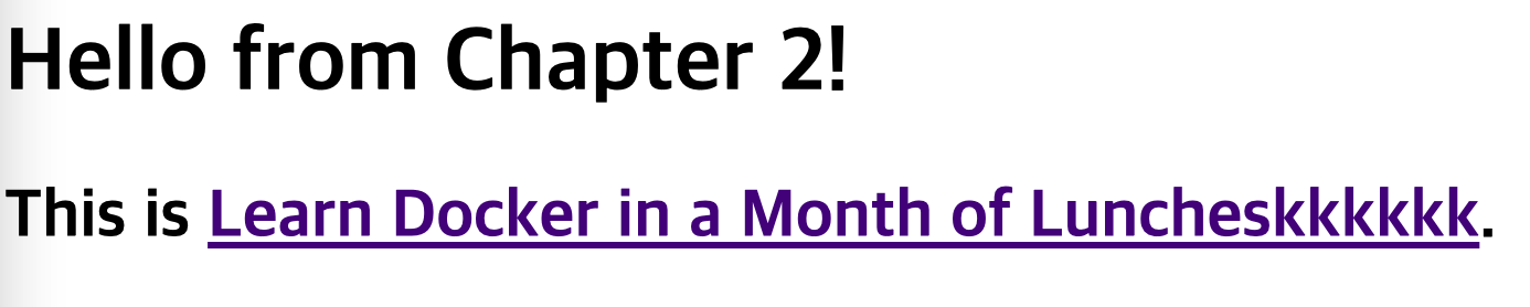 호스트 컴퓨터와 컨테이너가 어떻게 상호작용하는지 배우기 위해서 아래 명령어로 간단한 웹 사이트를 호스팅해본다.