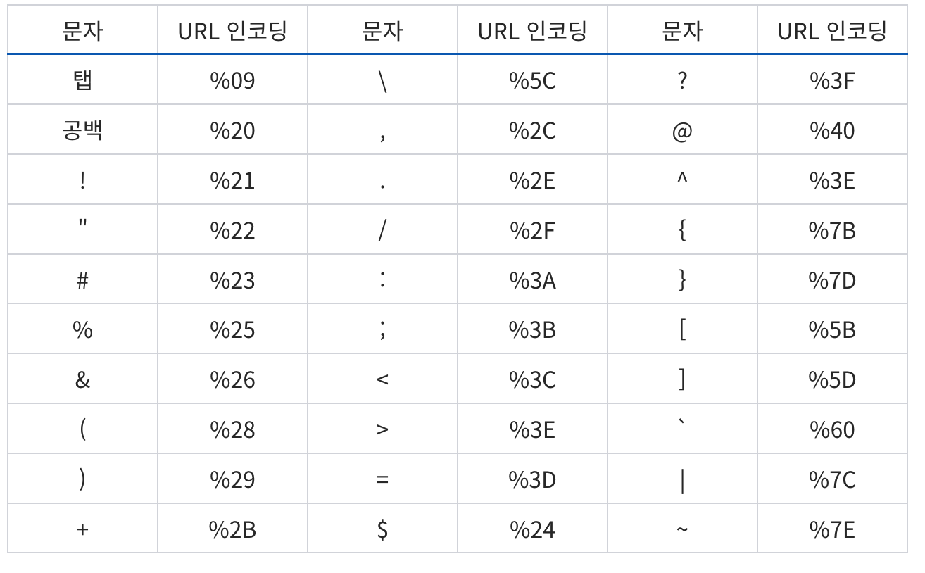 ASCII 코드에서 특수 문자들은 %에 2개의 16진수로 표시한다.