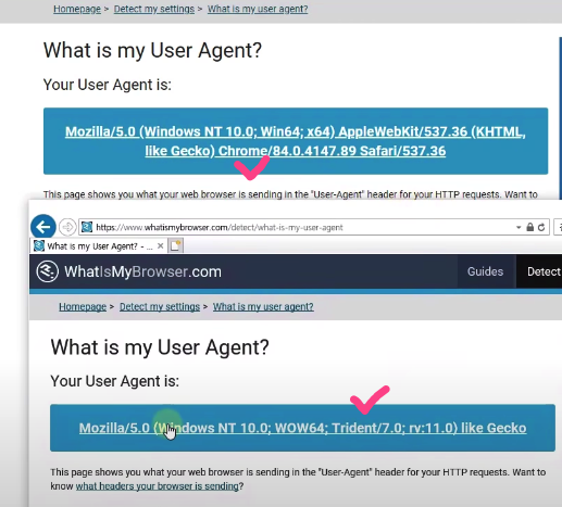 강의 내용처럼 What is my User Agent를 검색하여 해당 페이지에서 user agent 헤더값을 복사해오면 된다.