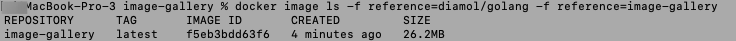 docker image ls -f reference=diamol/golang -f reference=image-gallery