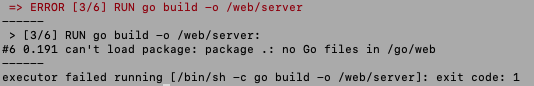 순서를 잘못 바꿔서 main.go 파일을 복사하지 않고 /web/server를 실행하면 에러가 난다.