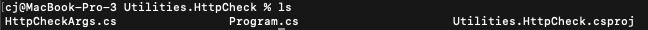 저자가 만들어놓은 Utilities.HttpCheck.csproj 파일을 복사하고 실행한다. 해당 디렉터리 위치에서 cs, csproj 확장자를 갖는 프로그램들을 볼 수 있었는데, dotnet 프로그램으로 짜여진 코드였다.