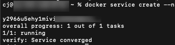 명령어를 입력하면 컴포즈때와는 다르게 실행 준비 단계를 거쳐서 verify 후 Service converged라는 메시지가 뜬다.