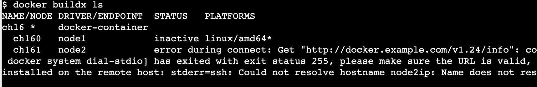 docker buildx ls 명령어로 확인해보니 node2에 ssh로 접근이 안되서 문제가 생겼다. 일단 개념만 알기 위해서 아래 내용들을 진행한다.