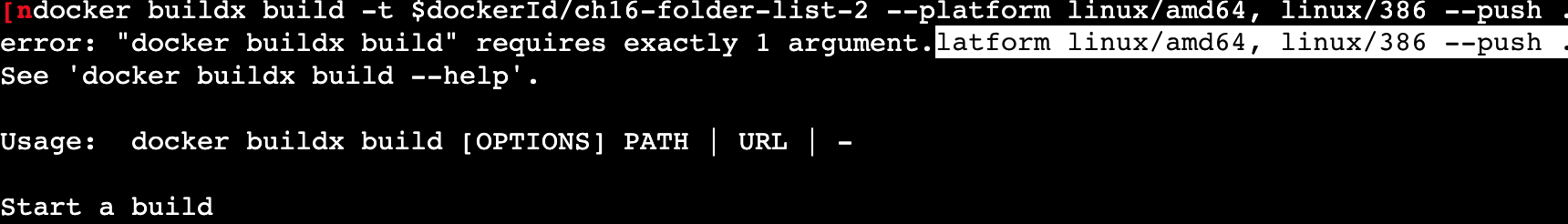 docker buildx build -t $dockerId/ch16-folder-list-2 --platform linux/amd64, linux/386 --push .