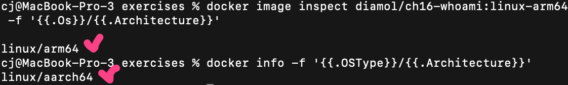 docker image inspect diamol/ch16-whoami:linux-arm64 -f '{{.Os}}/{{.Architecture}}' # 이미지의 아키텍처 확인