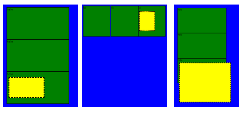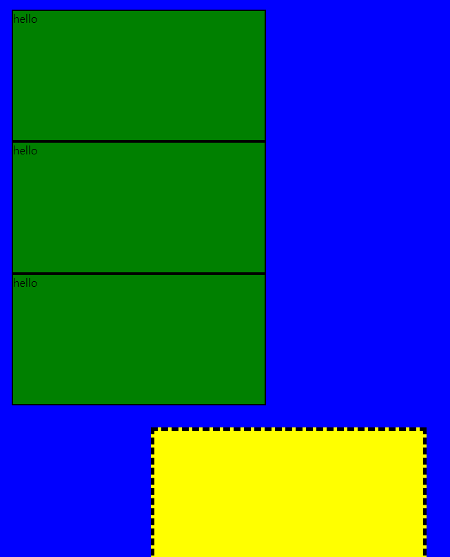 아래 예시에서, 초록색 box들은 parent element이고, 노란색 box는 child element이다.