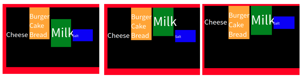 남은 black-box(Cheese)와 blue-box(salt)는 default값으로 baseline에 맞춰져 있게 되어있으므로, green-box의 baseline부분까지 올라오게 된다.