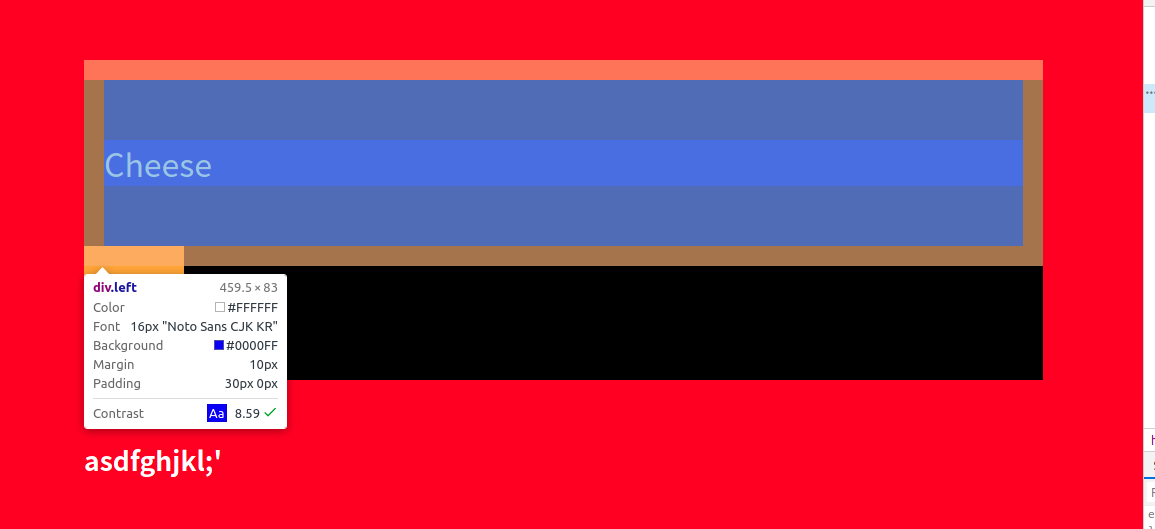추가적으로, 아래쪽 Burger-inline의 경우 Cheese-block의 margin을 관통하여 inline화 되어있음을 알 수 있다.