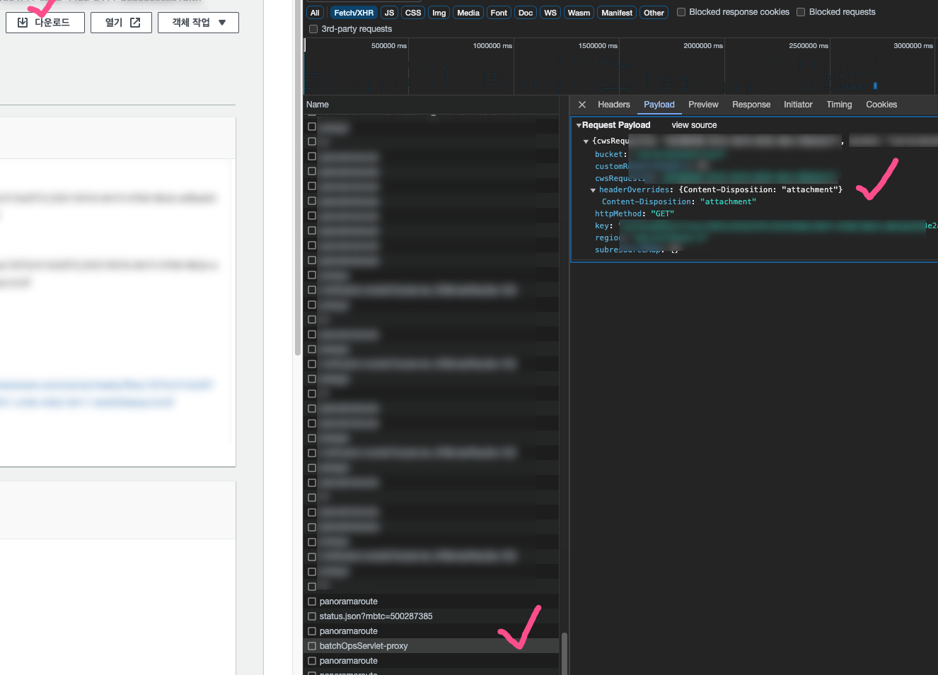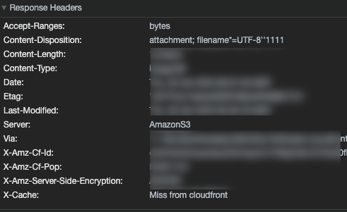 참고로 S3상 다운로드 자체를 할때를 말하는 것이 아니다. 이 때는 AWS에서 강제로 headerOverrides를해서 Content-Disposition에 "attachment"값만 남도록 만들어버린다.