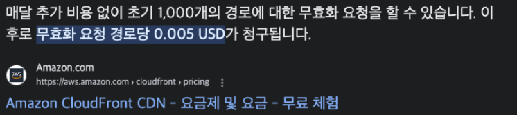 무효화 경로는 다음과 같이 구체적으로 지정해야한다. 구체적으로 지정해야 특정 파일에 대한 캐시만 무효화하고, 혹시 모를 리스크를 줄일 수 있다.