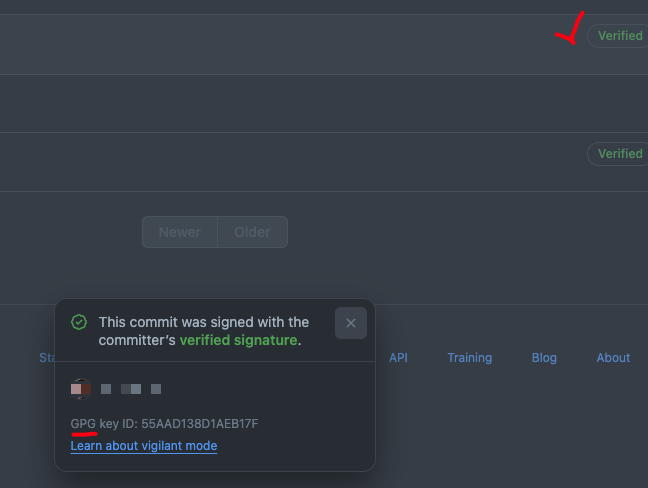 위 내용에 따라 local의 git config에 user.name, user.email 속성을 넣어주면 해당 ID를 통해서 github에 verified로 commit이 올라간다. 참고로 가장 최근의 commit을 메시지만 바꾸는 것은 아래 명령어로 할 수 있다.