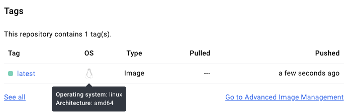 그리고나서 dockerhub에서 확인해보면 linux/amd64용으로 이미지가 올라간 것을 확인할 수 있다.