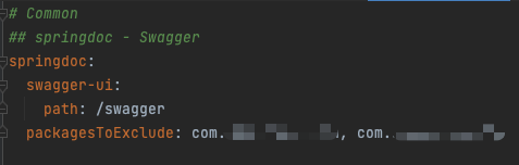 특정 패키지들은 제외되도록 packagesToExclude 속성에 패키지 경로들을 ',' 구분자로 추가해주었다.