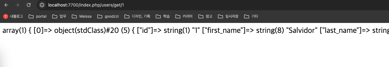 index.php/users/get/1 로 접속하면 아래처럼 출력된다.