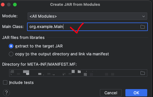 상기 과정은 intelliJ의 Artifacts 기능을 사용하여 GUI로 할 수도 있다.