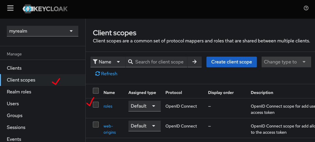 1. Client Scopes -> roles에 들어간다.