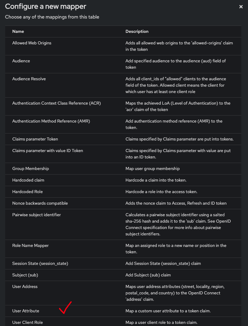 - Mapper Type: User Attribute