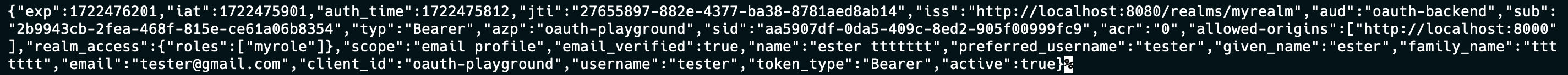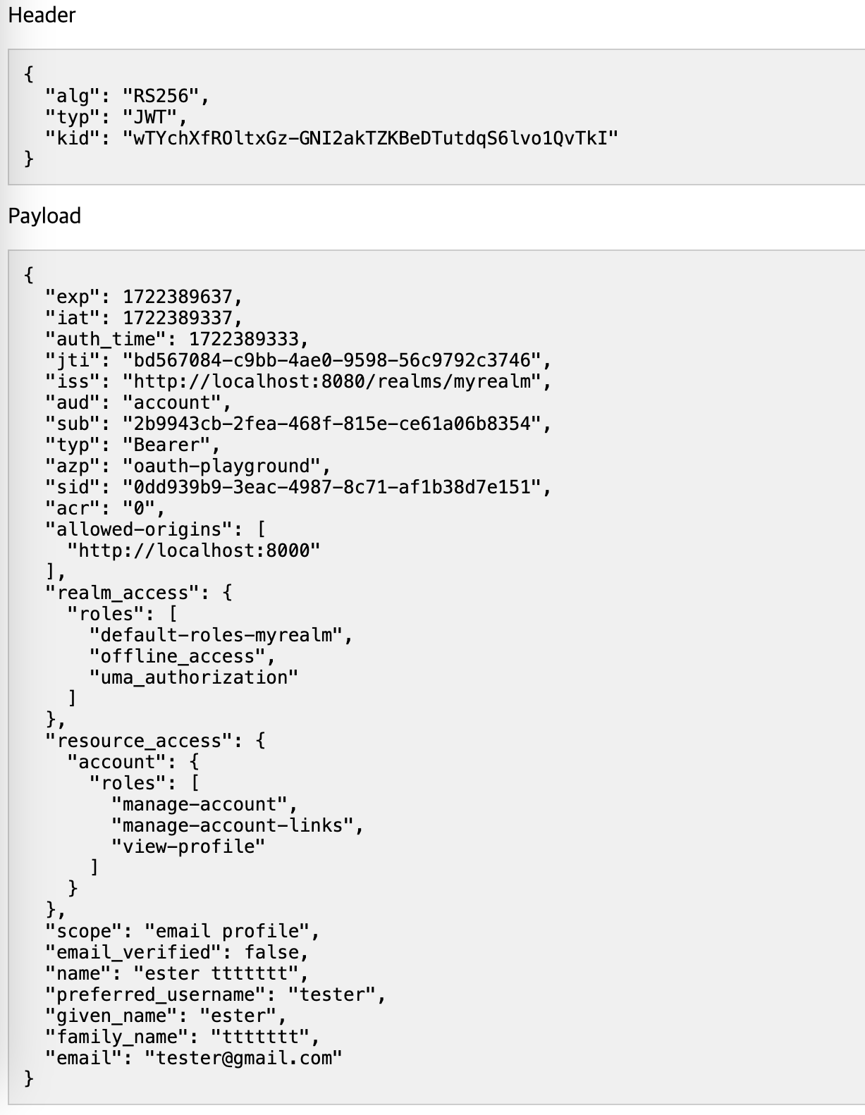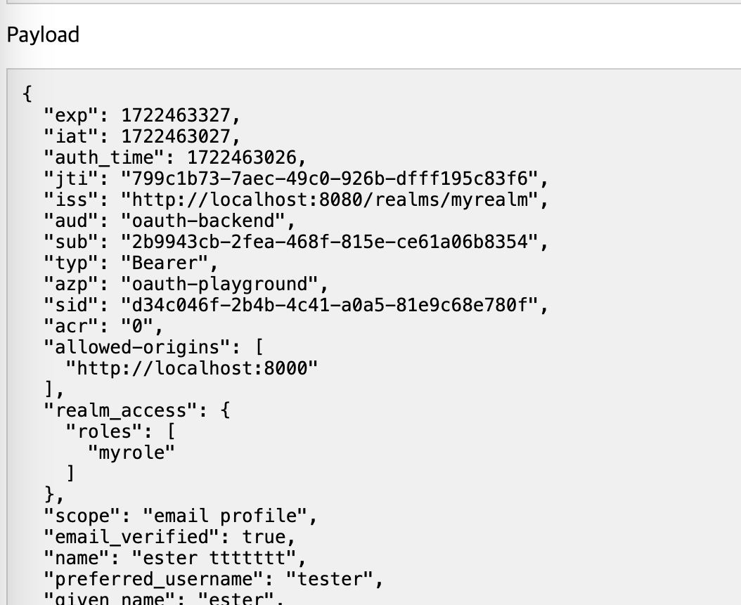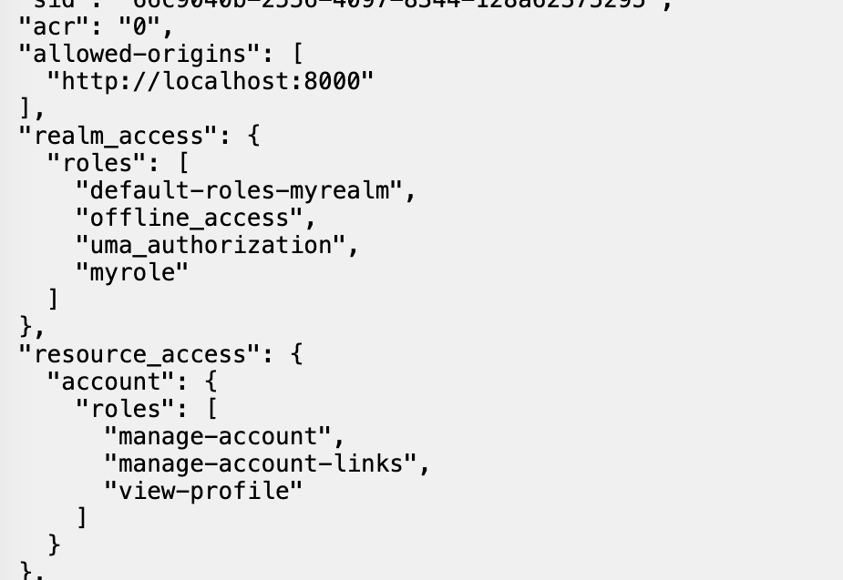 이후 다시 로그인 해보면 realm_access의 role에 myrole이 추가된 것을 확인할 수 있다.