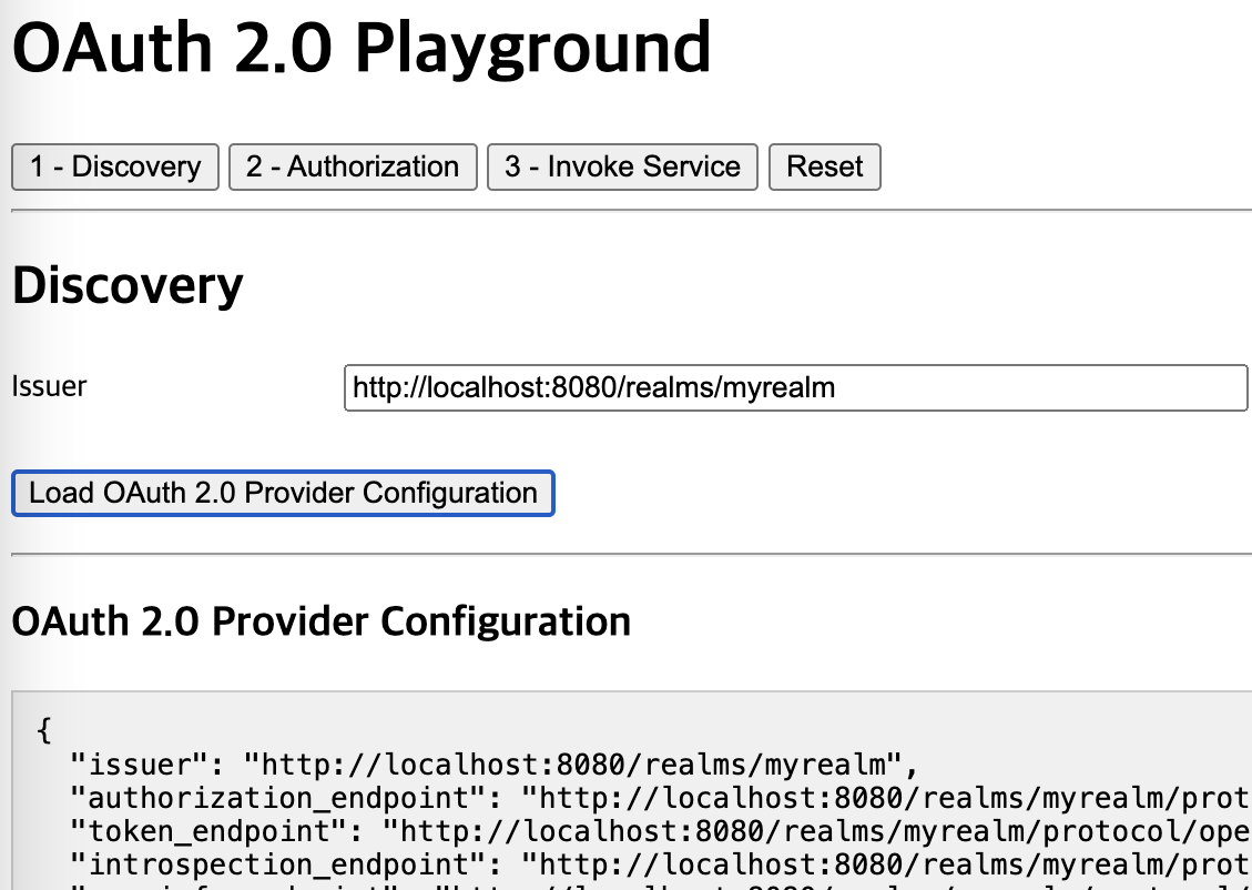 1. Discovery에서 Load OAuth 2.0 Prodiver Configuration 버튼을 누른다. 그 다음 2. Authorization에서 Send Authorization Request를 누른다.